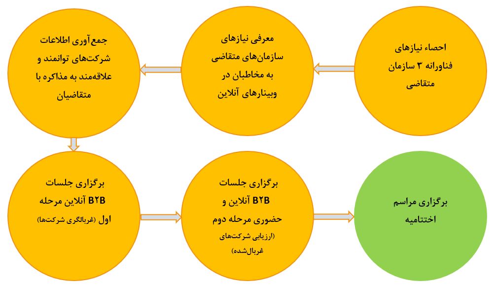 برگزاری مجموعا 44 جلسه مجازی و حضوری B2B (طی چند مرحله با 19 شرکت) بین سازمان های متقاضی و شرکت های دانش بنیان و فناور